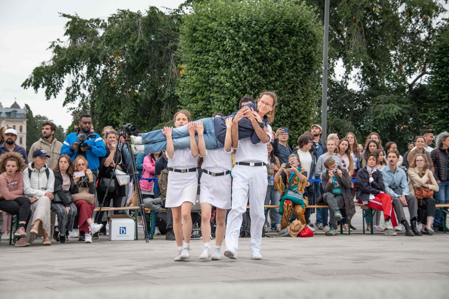 Public Movement presented a new public gathering at a central location in Stockholm. Together with five performers, the public was invited to experience choreographies of care, fictional scenarios of danger and orchestrated states of evacuation.