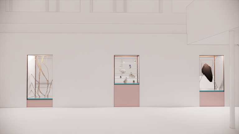 In Curiosity Cabinets: Medicinareberget, Hanna Ljungh has taken as a starting point the number of people (about 3600) who works in the building Natrium and the amount of certain minerals and elements present in their bodies. These minerals link us humans to other species and materials, food chains, geopolitical contexts and histories.