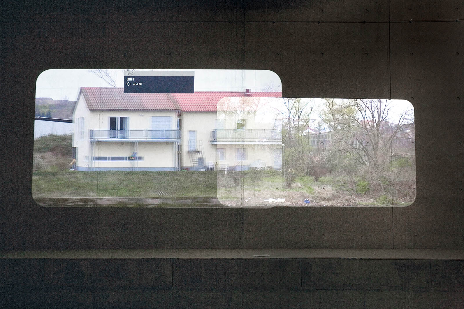 The work Elsewhere shows a train journey without beginning or end. It’s not where we are that is important. The essen­tial thing is the experience of travelling and watching the images go by. Yet, we persistently try to orient ourselves in time and space. We are forever searching for symbols, signals or signposts that could reveal or give us a hint about where we are and a valid geographical position. This installation is about the pheno­menon of travel. Early in life, we learn where our own body ends and the world begins. We also soon realise that we can move from one place to another on our own, even if it is just across the floor, to experience new things. Being born and dying in the same place on earth used to be the norm a few hundred years ago. The world that was unknown. It took months to cross the ocean, days to travel across a country.