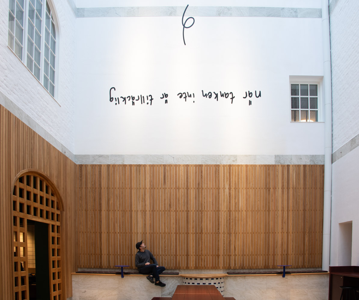 In a light atrium in one of KTH Royal Institute of Technology’s historical buildings, Magnus Thierfelder Tzotzis has created an artwork that seeks to reverse the perspective and question the accepted. När tanken inte är tillräcklig is the original swedish title.