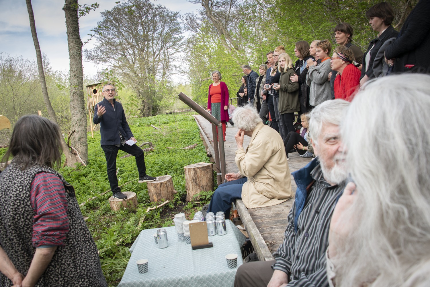 Brakfesten / La Grande Bouffe by Anne Duk Hee Jordan and Pauline Doutreluingne is an art project in the form of a living sculpture and a film. The work focuses on the nature reserve of Södra Hällarna where elm trees are threatened with extinction. Fallen and felled trees lie around like infected dead bodies and the ecosystem has been disturbed. But in the larger cycle of life, even the dead trees can be of help to restore and maintain the ecological cycle.
