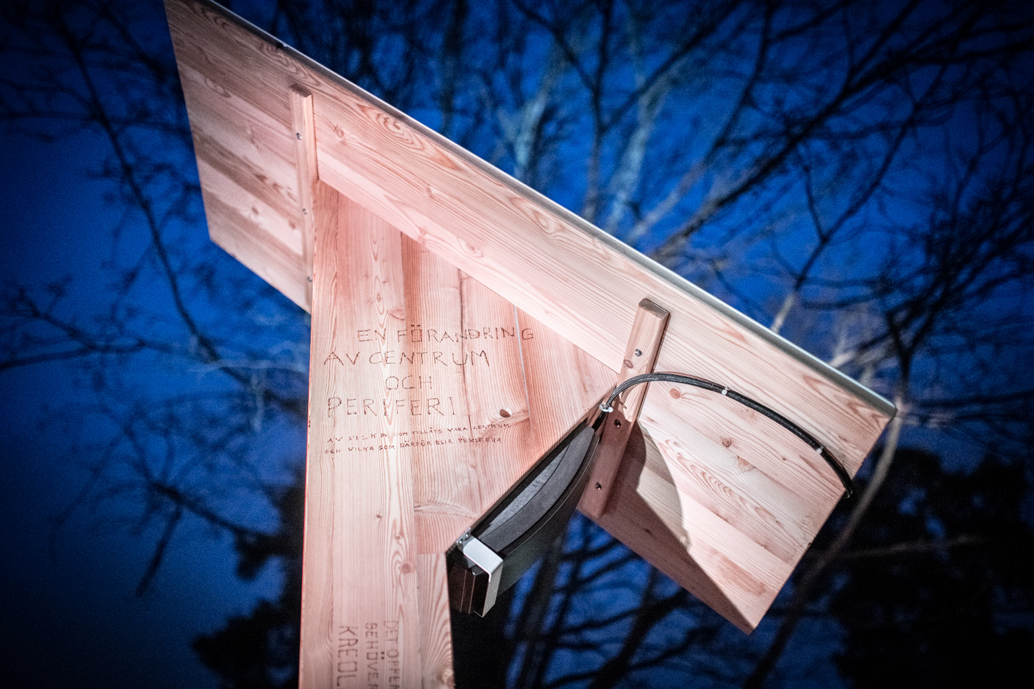 The Stockholm suburbs Hässelby and Vällingby feature much public art that reflects an idea of a 1950s populated by a relatively homogenous working class. The amphitheatre Şaneşîn provides our contemporary age with a representation. Şaneşîn reflects the Creole experience, which encompasses migration, multilingualism and an anti-racist struggle.