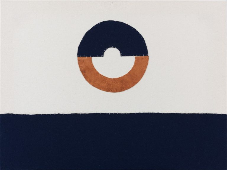 In Carola Grahn’s textile collages Måne and Fält I, the traditions of Sámi craft and western art collide in a kind of notation method. Listen to Carola Grahn elaborating on the series Notes on Hide and how she relates to vätnoe, Sámi craft, in the film above.