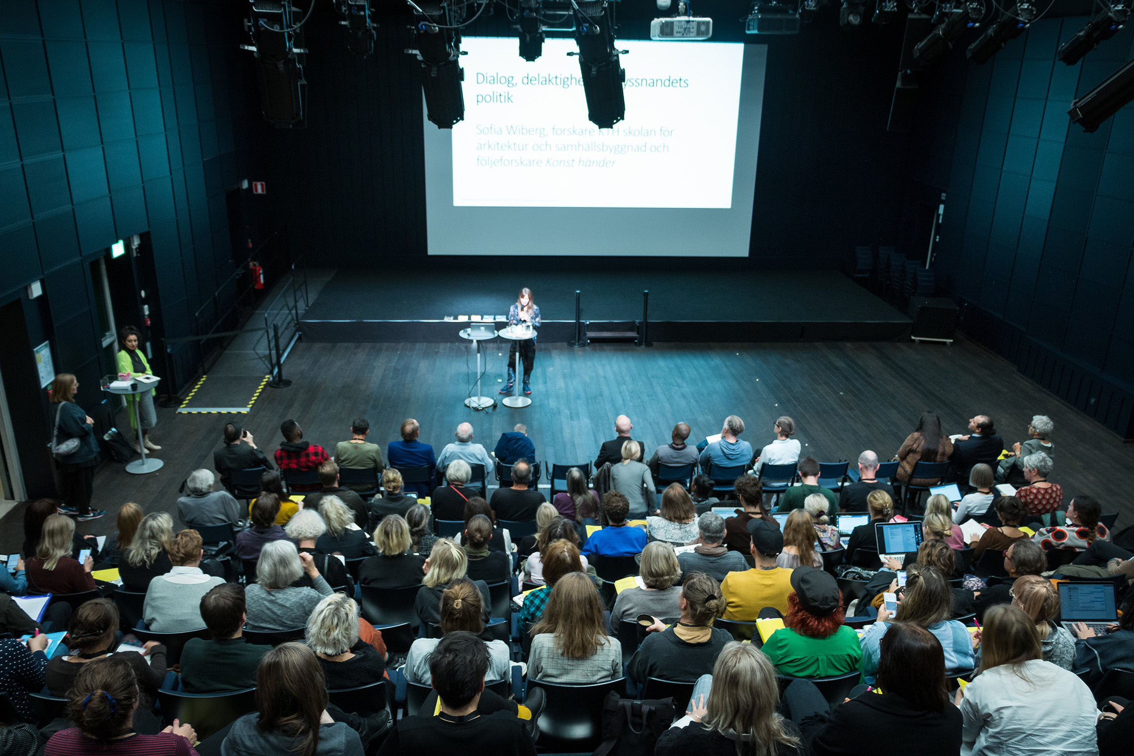 The programmes provide a stage for dialogues, interpretation and discussions about art and how we can influence, create and understand different types of shared spaces. Programme activities may include physical meetings, in a room, a forest, at a square or in digital space. They can be broadcast live or be pre-recorded and published online without being bound to a specific date or place. Our programme activities are often recorded so they can be available on the web for a long period. In addition to digital conferences, we produce films, radio shows, podcasts, sound works as well as commission digital artistic features for the programmes.